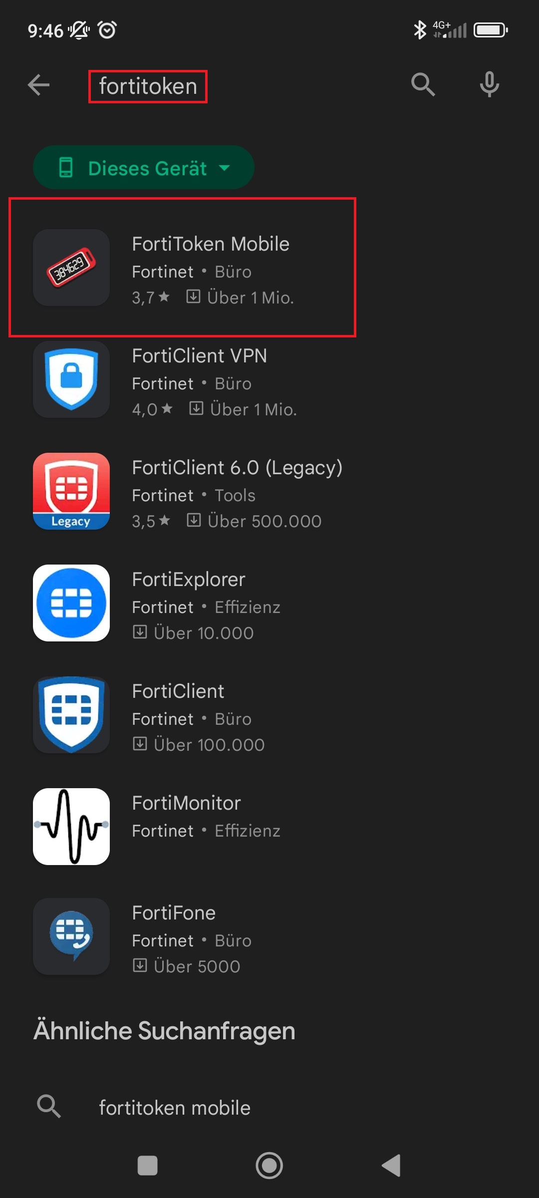 2.Nach Forti Token Mobile suchen