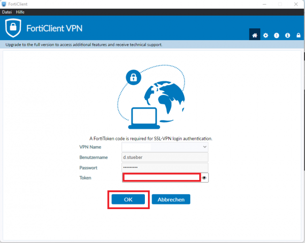 * Random Key: Die Forti Mobile app wechselt jede Minute den Forti Token Code. Aus Sicherheitsgründen ist diese nur 1 mal Gültig